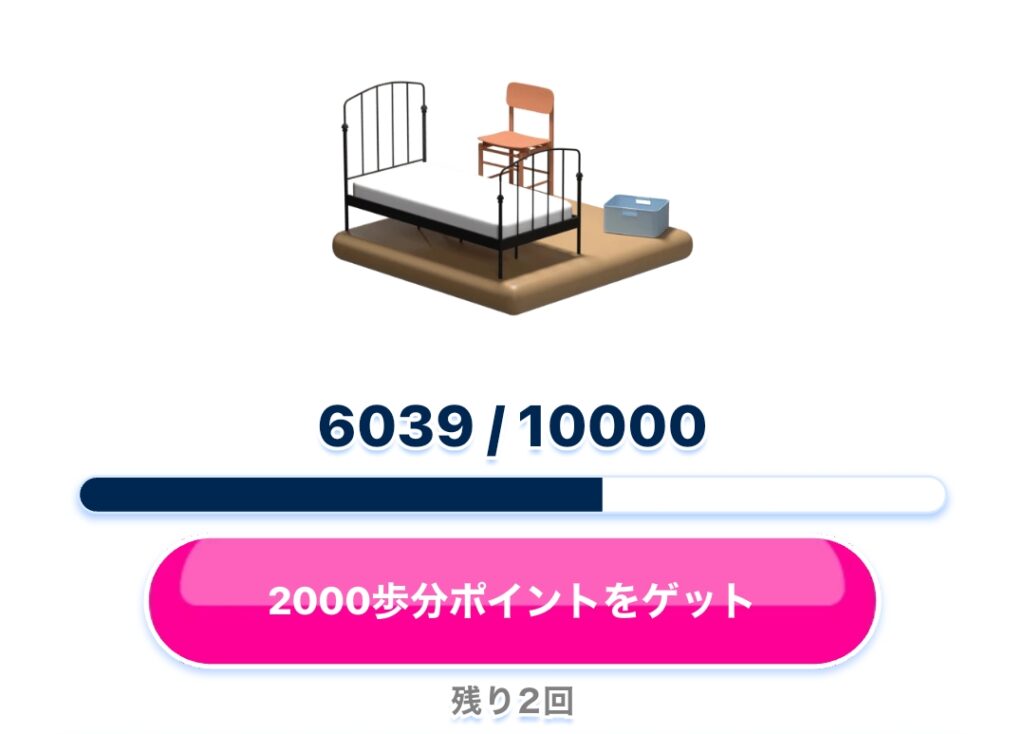 - 2,000歩ごとに広告視聴で5ポイント獲得(上限10,000歩)