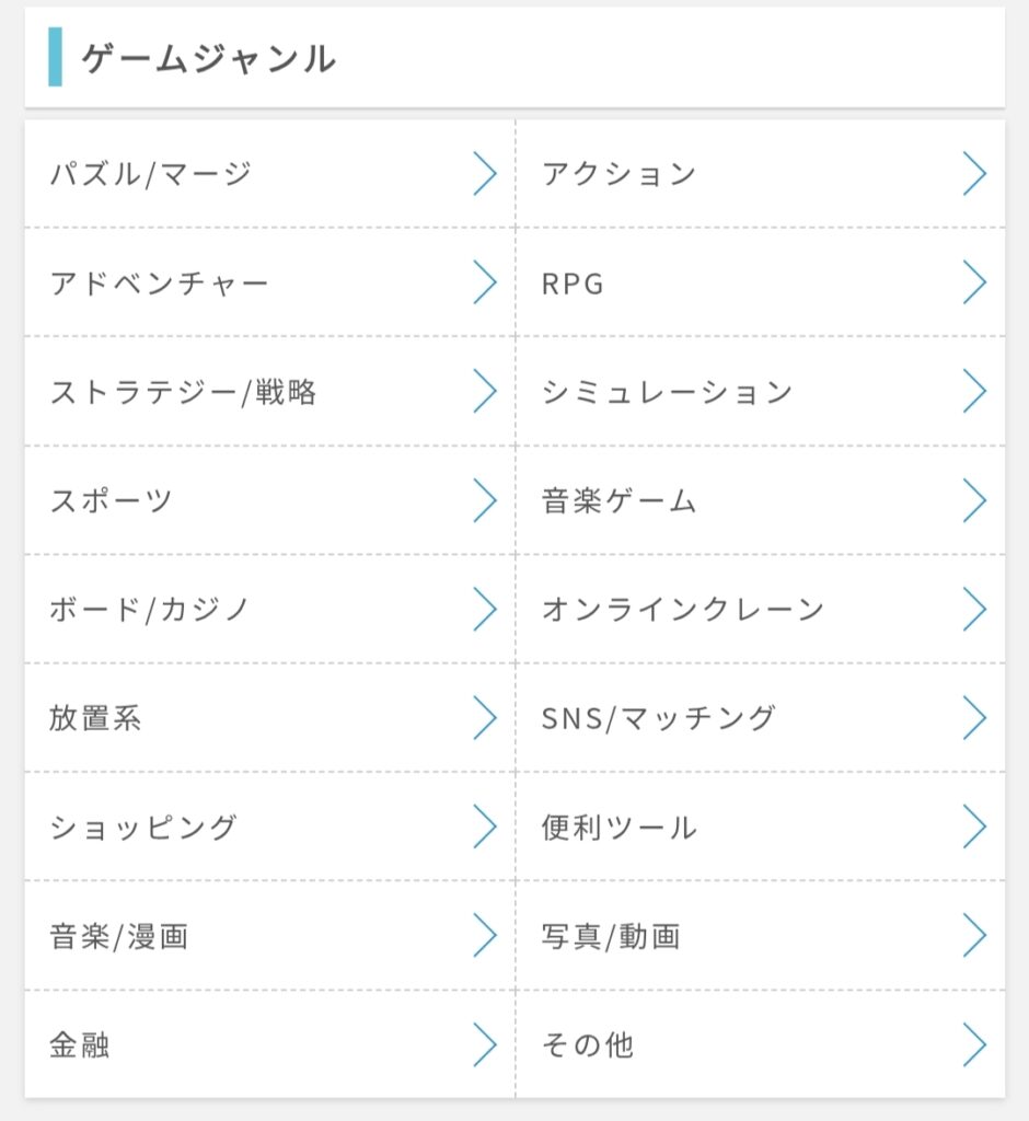 自分の好みのジャンルからゲームアプリ案件を探すことも可能です◎
