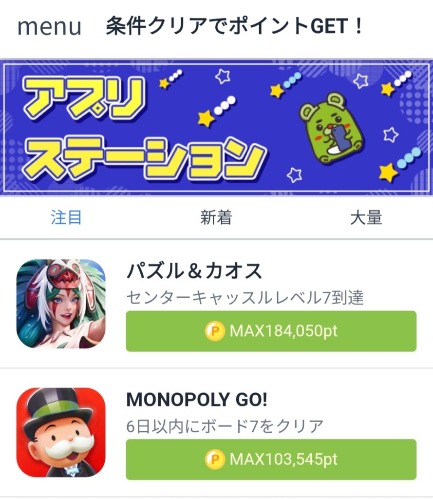 「アプリ利用でptゲット」や「マルチステージアプリ」と同様に、