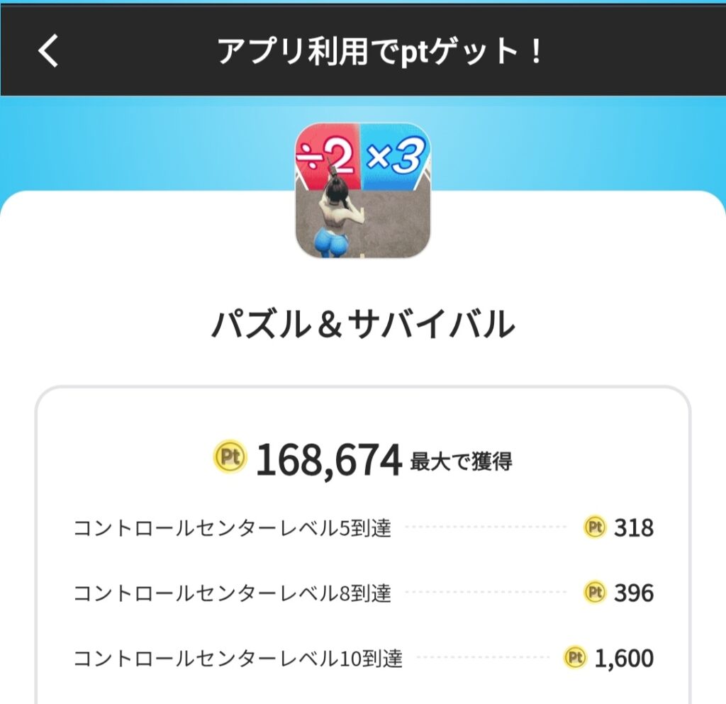(例)アプリ利用でptゲット!より「パズル&サバイバル」案件