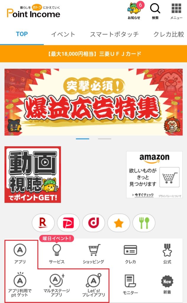 そんな人には、「アプリ利用でptゲット」or「マルチステージアプリ」のページが向いています。